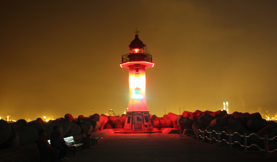 더불어, 방파제 우측의 빨간 등대는 빨강, 주황, 노란색 계통의 빛을, 좌측의 하얀 등대는 초록, 파랑, 남색, 보라색 계통의 빛이 마침 천연 무지개를 형상화 하는 것처럼 주기적으로 변색토록 하여 도심야경으로 인한 배후광을 해소하고 선박의 안전운항 확보에 기여토록 했다.
