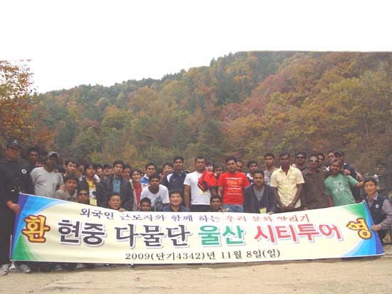 현대중공업 동아리인 현중다물단(단장: 姜외철, 50세)은 11월 8일(일) 사내 협력회사에서 근무 중인 외국인 근로자 50여 명을 대상으로 울산지역 문화유적지를 돌아보는 ‘우리 문화 알리기’ 행사를 마련했다.