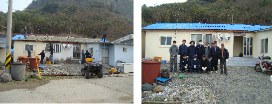 이러한 어려움을 국가어업지도선 무궁화8호(선장 진이동)승선직원 13명은 충남해역 출동업무수행중 지도,단속업무와 병행 직무범위확대를 위한 동아리활동의 일환으로 낙도 장애어업인 등의 정주여건 지원을 위해 주택 지붕과 외벽 도색, 보일러 수리, 파손된 목제 교체작업 등을 하여 동절기 추위 속에 생활하는데 불편함이 없도록 지원했다.