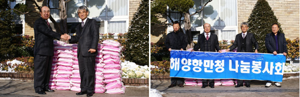 인천지방해양항만청(청장 김덕일) 동호회인 나눔회는 서로 돕고 나누는 문화 실천의 일환으로 지난 12월 28일 인천광역시 중구청을 방문하여 어려운 이웃에게 전달될 쌀 10Kg 56가마를 기탁했다.