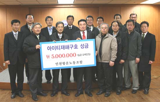 인천항만공사에 따르면, 2월 12일 인천항운노동조합(위원장 이해우)에서 조합원들이 직접 모금한 성금으로 아이티를 위해 소중하게 써달라며 인천항만공사에 기탁했다고 밝혔다.