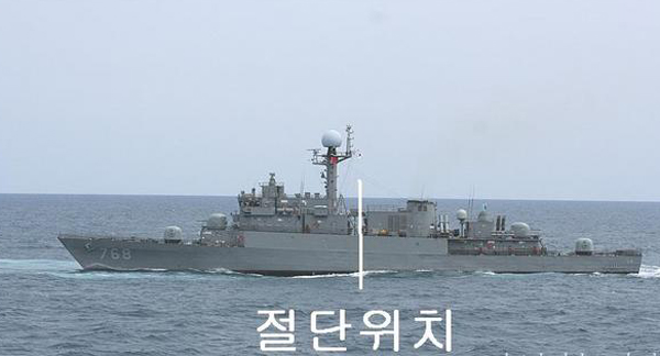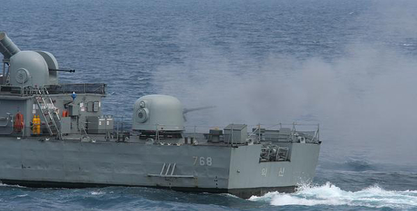 (사진 : 천안함과 동종의 익산함으로 함수와 함미에 각각 40미리 함포와 76미리 함포를 장착하고 있다)