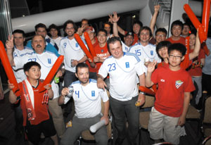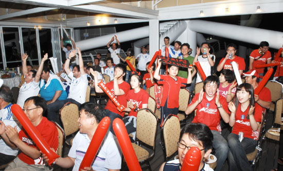 STX조선해양이 그리스 고객들과 함께 한국의 남아공월드컵 본선 첫 경기의 공동 응원전을 펼쳤다.