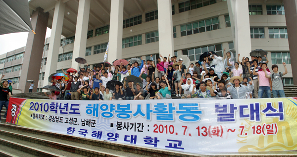 한국해양대학교 총학생회는 13일 오전 200여 명의 재학생이 참가한 가운데 2010학년도 여름 방학 해양봉사활동 발대식을 가졌다.