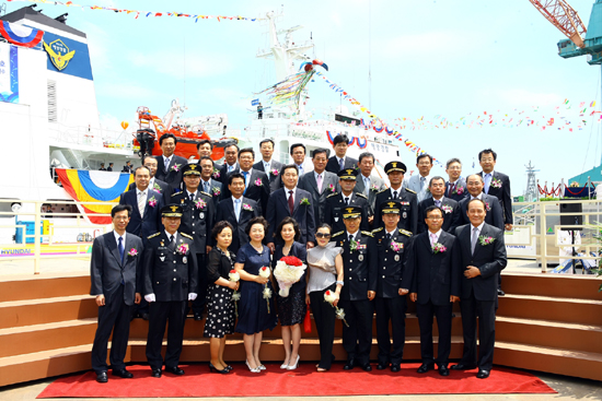 이날 인도식에는 현대중공업 오병욱 사장과 해양경찰청 이길범 청장 등 70여명의 관계자들이 참석해 선박의 성공적인 건조를 축하했다.