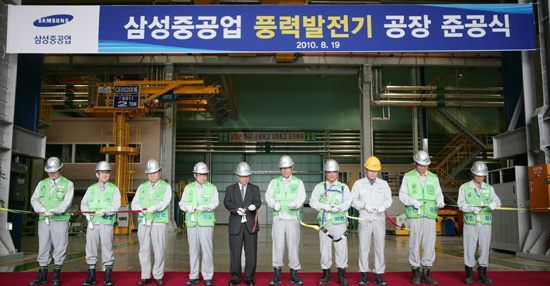 삼성중공업이 연간 500MW 규모의 생산능력을 갖춘 풍력발전기 생산 공장 건설을 완료하고, 19일 노인식 사장을 비롯한 임직원 200여명이 참석한 가운데 준공식을 개최했다.