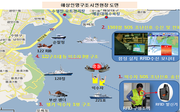 부산시는 연근해 어선원들의 조업을 돕고, 어선의 해난사고에 따른 인명피해를 예방하기 위해 조난자 위치발신 장비가 장착된 ‘RFID(Radio-Frequency-IDentification) 구명조끼 착용 해상인명구조 시연회’를 8월 26일 오후 2시 30분부터 수영만 해상에서 실시한다고 밝혔다.