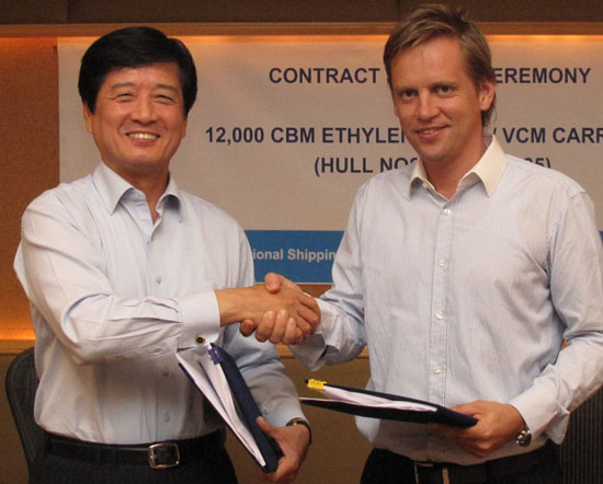 대우조선해양 남상태 사장은 26일 싱가포르 우드사이드(Woodside Holding International Shipping)社의 로저 하게네스(Roger Hagenes) 사장과 함께 12,000㎥ 에틸렌 운반선 8척에 대한 수주 계약서에 서명하였다. 총 계약 금액은 약 3억 2천만 달러이며, 2012년 2분기부터 2013년 3분기까지 선주 측에 모두 인도될 예정이다. 해당 선박들은 인도 후 싱가포르를 기점으로 선대 형태로 운영된다.