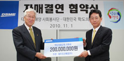 나라가 위기에 처했을 때 자원해서 죽음의 전장(戰場)으로 향했던 학도의용군 출신 독거노인에 대해 대우조선해양이 우리나라에서 처음으로 지원에 나섰다.(사진 : 대우조선해양 사회봉사단 단장인 이병모 전무(오른쪽)와 대한민국 학도의용군회 경서호 회장(왼쪽)이 지원금 전달식을 하고 있다)