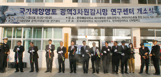 한국해양대학교(총장 오거돈)는 22일 오후 3시 교내 해사대학관에 해면상공과 해면, 해면하(수중)에 대한 입체적인 광역감시체계 구축을 목적으로 하는 ‘국가해양영토 광역3차원감시망 연구센터’를 개소했다.