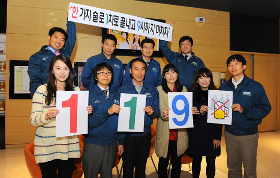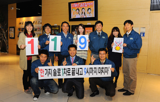 현대중공업은 잦은 모임으로 각종 술자리가 많아지는 11월 말부터 내년 1월까지 임직원들의 건강도 챙기고 안전사고를 예방하기 위해 ‘119 송년문화’라는 전사적인 캠페인을 펼치고 있다.