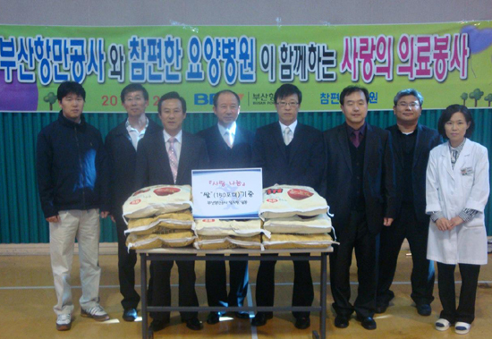 부산항만공사(사장 노기태)는 지난 4일 사회공헌활동의 일환으로 감천항 인근 독거노인들에게 사랑의 쌀을 전달하고 인근 병원과 연계해 의료봉사활동을 실시했다.