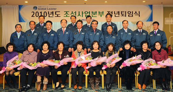 한 회사에서 한꺼번에 1천명 가까운 임직원이 정년퇴직을 맞는다는 것은 매우 이례적인 일로, 안정된 노사관계를 바탕으로 직원들에게 주어진 정년이 만 58세인 현대중공업은 직원들의 평균 근속 년수가 19.9년에 달할 정도로 우수한 근무여건을 자랑하고 있다.(사진:12월 9일(목) 호텔현대울산에서 열린 「2010년 정년 퇴임식」장면)