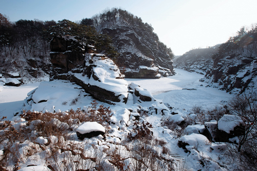 한편으로는 전쟁 당시 큰 전공을 세웠다는 박승일(朴昇日) 대령의 이름을 따서 붙인 이름이라고도 하고, ‘김일성을 이기자’는 뜻에서 승일교(勝日橋)라 명명했다는 설도 있다. 아무튼 오늘날 승일교는 사람의 통행만 가능하고, 차량은 바로 옆에 새로 가설된 한탄대교를 이용한다. (사진:한탄강 최고의 절경으로 손꼽히는 고석정의 설경)