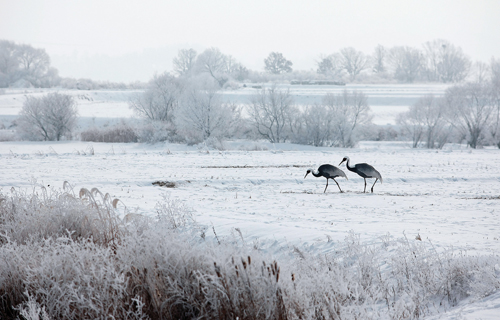 철원까지 와서 1코스의 일부분만 걷고 돌아가기 아쉽다면, 도피안사(倒彼岸寺)나 노동당사 같은 2코스의 몇몇 경유지를 미리 둘러보는 것도 괜찮을 성싶다. 철원군 동송읍 관우리 관음동 마을에 위치한 도피안사는 신라 때 창건됐다는 고찰이다. 6·25전쟁 당시 큰 피해를 본 데다 한동안 민간인 출입통제선(민통선) 안쪽에 있어서 긴 내력에 비해 규모는 소박한 편이다. 덕분에 산사다운 고즈넉함이 오롯이 살아 있다. (사진:민통선 내 철원평야에서 한가로이 먹이를 찾는 두루미 한 쌍)
