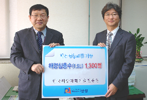 한국해양과학기술진흥원(원장 신평식)이 11일 구제역 피해지역인 경기 안성시와 충남 보령시에 해양심층수 3,000ℓ를 기부하여 고통받는 지역시민들에게 희망을 안겨주어 화제가 되고 있다.