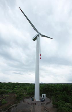 한편, 두산중공업과 지식경제부는 15일 서울 강남구 리츠칼튼 호텔에서 김정관 지식경제부 에너지자원실장, 심규상 두산중공업 운영총괄사장(COO), 슈테펜 라이헤(Steffen Reiche)DEWI-OCC 부사장 등 70여명이 참가한 가운데 국제인증 수여식을 가졌다.(사진:두산중공업이 제주에 설치 운영중인 풍력)