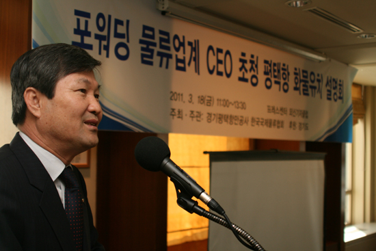 경기평택항만공사(사장 서정호)는 18일 서울 프레스센터에서 한국국제물류협회(KIFFA)와 공동으로 평택항 화물증대를 위한 ‘포워딩 물류업계 CEO 초청 평택항 화물유치 설명회’를 개최했다.
