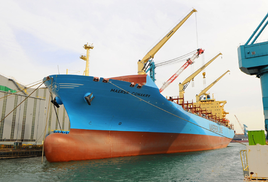 현대중공업 스마트십은 선박 엔진과 제어기, 각종 기관 등의 운항 정보를 위성을 통해 육상에서 실시간으로 모니터링하고 선박 내 통합시스템을 원격 진단 및 제어할 수 있는 차세대 선박이다.(사진:최초의 스마트십인 AP몰러사의 4천500TEU급 컨테이너선)