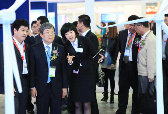 특히, 현대중공업은 이번 전시회의 메인 스폰서를 맡고, 회사 최고 경영진들도 대거 참석해 시장 현황과 기술 동향을 점검하고 활발한 마케팅 활동을 벌였다. (사진:상해 국제풍력전시회(1) : 이재성 현대중공업 사장이 상하이 국제풍력전시회에서 해상 풍력발전기 모형을 보며 설명을 듣고 있다)