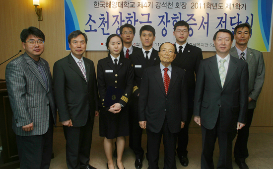 한국해양대학교 소천장학회(회장 강석천)는 13일 오전 학내 후생복지관 5층(아치홀)에서 ‘2011학년도 1학기 장학증서 수여식’을 개최했다.
