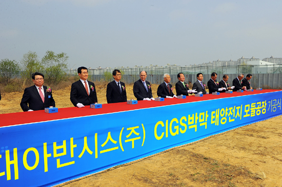 이날 기공식에는 민계식 현대중공업 회장을 비롯해, 드 샬렌다(PA de Chalendar) 프랑스 생고방 회장, 김종록 충북 정무부지사, 이종윤 청원군수, 등 정부 및 관계 인사 250여 명이 참석해 국내 최대 박막 태양전지 공장 건설을 축하했다.