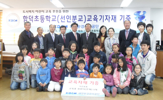해양환경관리공단(KOEM, 이사장 곽인섭)은 5월 3일 자매결연 학교인 제주도 함덕초등학교 선인분교를 방문하여 학생 23명과 교사 5명이 참여한 가운데 교육용 컴퓨터 5대를 기증했다.