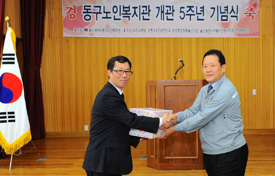 또 현대중공업은 이날 동구노인복지관 개관 5주년을 맞아 소외된 어르신들에게 써달라며 치약과 샴푸 등 3백만 원 상당의 물품을 지원하기도 했다. (하단 사진)