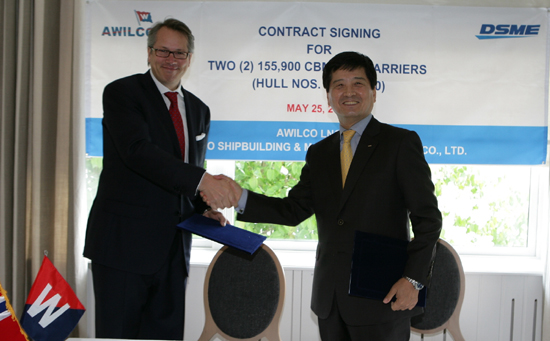대우조선해양(www.dsme.co.kr, 대표이사 남상태)은 25일 오후(현지시간) 오슬로 현지에서 세계 최대 크루즈 선사인 RCCL(Royal Caribbean Cruises Ltd)의 대주주이자 노르웨이의 가스 운송회사인 아빌코(Awilco LNG AS)社와 LNG선 2척에 대한 계약을 체결했다.