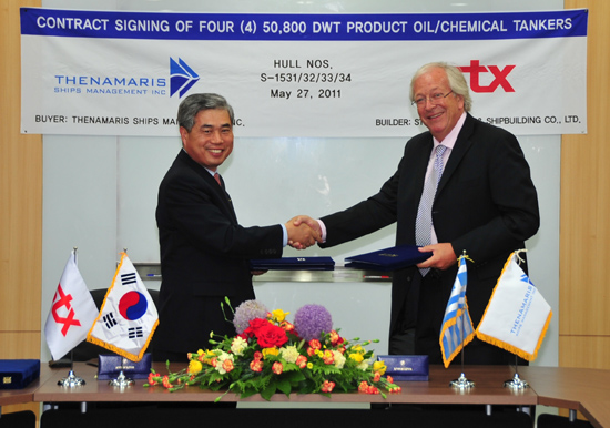STX는 지난 27일 경남 창원에 위치한 STX종합기술원에서 신상호 STX조선해양 사장, 벤 굿헤드(Ben Goodhead) 테나마리스 사장 등 관계자 20여명이 참석한 가운데 계약식을 열고 이 같은 내용의 계약서에 서명했다고 30일 밝혔다.
