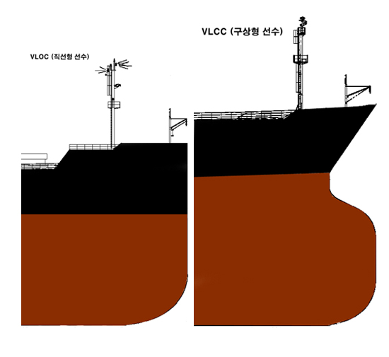 하지만 STX조선해양이 건조하는 VLOC는 직선형 선수를 채택했는데, 자체 테스트 결과 40만톤급 이상의 초대형 선박은 구상선수보다 직선형 선수가 저항을 줄이는데 더욱 효과적이며, 나아가 연비 향상에도 도움을 준다는 결론을 내렸기 때문이다.