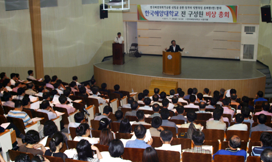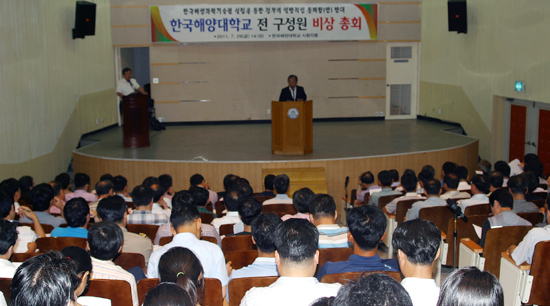 한국해양대학교(총장 오거돈)는 29일 오후 2시 시청각동에서 대학 전 구성원이 참여한 가운데 비상총회를 열고 한국해양대를 폐교시키는 내용의 한국해양과학기술원(KIOSTㆍ해양과기원) 설립법안 저지를 위해 범 대학 차원의 전면 투쟁에 나서기로 했다.