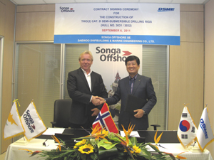 지난 6일 (현지시간) 대우조선해양은 노르웨이 시추선 전문 운용 회사인 송가 오프쇼어(Songa Offshore)社로부터 반잠수식 시추선 2기에 대한 계약을 체결했다고 밝혔다. 또한 양사는 추가로 동급 시추선을 2기를 더 수주할 수 있는 옵션에도 합의했다.