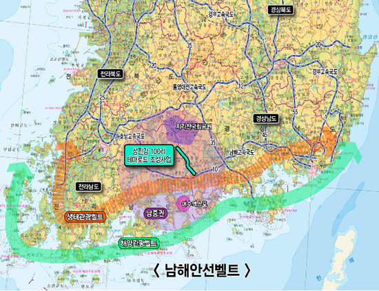 국토해양부(장관 권도엽)는 영·호남 화합의 상징공간인 섬진강변에 ‘남해안 선벨트’ 관광의 중심축으로서 지리산과 남해안을 연결하는 스토리가 있는 도보길인 「섬진강 100리 테마로드 조성사업(사진)」을 10월부터 본격 착공한다고 밝혔다.