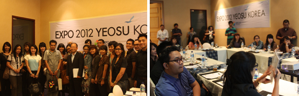 2012여수세계박람회 조직위원회(위원장 강동석, 이하 조직위)는 지난 9월29일 자카르타 리츠칼튼 호텔에서 인도네시아 주요 언론과 기자간담회를 가진데 이어, 9월30일 여행업체 상품개발담당자 대상 설명회(한국관광공사 자카르타 지사 회의실)를 가졌다.