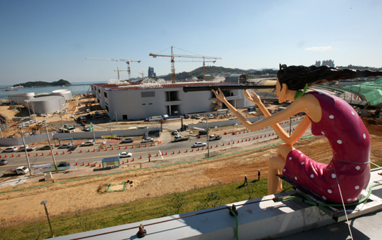 (사진:2012여수세계박람회 조직위원회 옥상에 설치된 김경민 작가의 작품 ‘꿈꾸는 세상’. 김경민 작가의 작품은 앞으로 여수역에서 시작해 국제관을 가로지르는 디지털 LED 거리인 ‘엑스포갤러리(EDG)'에도 설치될 예정이다)