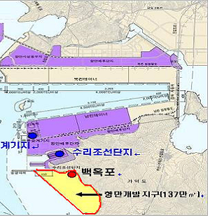 부산의 대표적 관광지인 동백섬의 군 수영부두(35,105㎡)가 시민의 품으로 돌아온다.(사진:가덕도 백옥포 일대 항만시설 설치 예정지역 당초 백옥포에 설치 계획하였던 군 부두는 이번 합의로 백지화하고 항만시설로 개발할 수 있게 됐다)