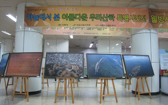 (사진: 22일까지 서울지하철 6호선 고려대역에서 열리고 있는 국립산림과학원의 '숲속에서 찾은 보물전시회'와 '하늘에서 본 우리 산하 사진전')