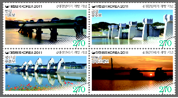 4대강살리기추진본부는 10월 22일 한강 이포보, 금강 공주보, 영산강 승촌보, 낙동강 강정고령보 등 4개보에서 동시 개최되는 ‘4대강 새물결 맞이’ 행사를 기념하는 우표가 지식경제부 우정사업본부에서 10월21일 발행되었다고 밝혔다.
