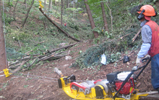 대회에 사용되는 2드럼 케이블윈치는 현장의 임업기능인이 직접 개발한 기계로 대형집재 장비와는 달리 소음과 진동은 작고 출력은 큰 우수 장비다. 집재능력(15㎥/일/3인)도 좋아 인력작업에 비해 6배나 생산성이 높다. 100m 거리 내 목재를 수집할 때 유용하고 대형 집재장비의 보조장비로 활용해 작업의 효율을 높일 수 있다.