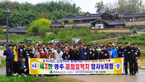 현대중공업 사내 동아리인 현중다물단(단장: 임관휘)은 지난 6일(일) 사내 협력회사에서 근무 중인 외국인 근로자 34명을 대상으로 천년고도(千年古都) 경주의 문화유적지를 돌아보는 ‘우리 문화 알리기’ 행사를 마련했다.