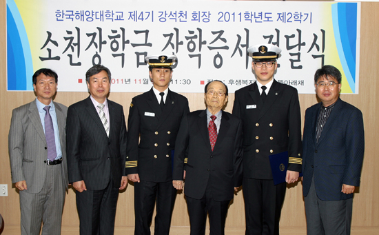 한국해양대학교 소천장학회(회장 강석천)는 9일 오전 학내 후생복지관 5층(아치홀)에서 ‘2011학년도 2학기 장학증서 수여식’을 개최했다.