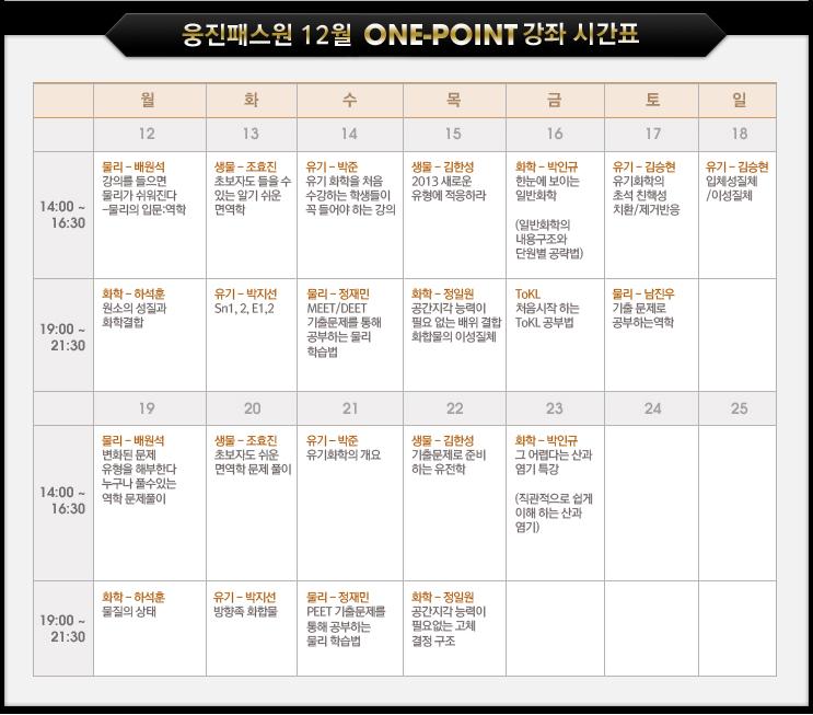 한편 웅진패스원에서는 약학대학입시를 준비하는 수험생들에게 12월 한달간 전 강좌를 무료로 수강할 수 있는 이벤트를 진행하고 있다. 수강을 원하는 학생은 웅진패스원 홈페이지(mdpeet.passone.net)에서 선착순 접수가 가능하다