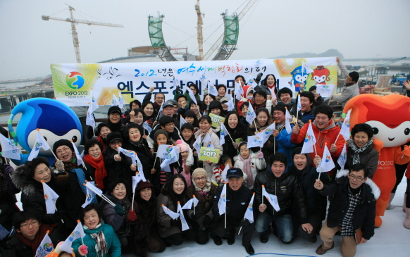 200여 명의 여수세계박람회 자원봉사자와 서포터즈, 조직위원회 직원 가족들이 박람회 성공을 한마음으로 외쳤다. 이들은 1월 1일(일) 박람회장 내 해상문화공간 빅오(The Big-O)에 모여 일출을 기다리며 여수엑스포 성공 개최를 기원했다.