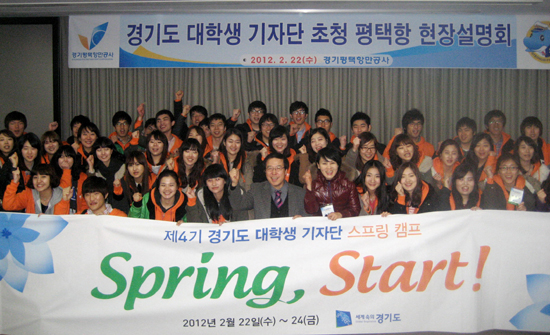 (사진:22일 경기평택항만공사(사장 최홍철)는 평택항 홍보관에서 경기도 대학생 기자단을 초청 평택항 현장 설명회를 가졌다. 사진은 최홍철 사장(가운데)이 도 대학생 기자단 학생들과 방문 기념촬영을 하고 있다.)