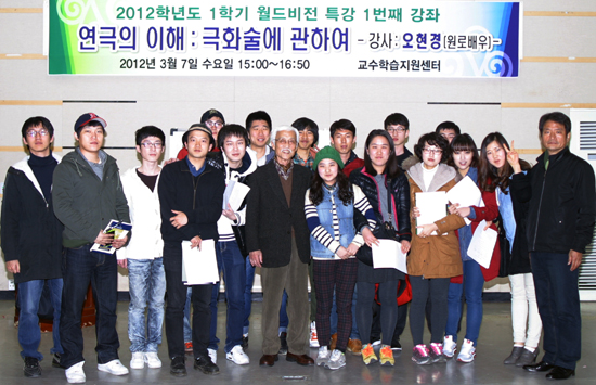 한국해양대학교(총장 박한일)의 명품 교양강좌 ‘월드비전’ 특강의 올해 첫 번째 강의에 원로 연극배우 오현경 씨가 나서 ‘연극의 이해 : 극화술에 관하여’를 주제로 강연을 펼쳤다.