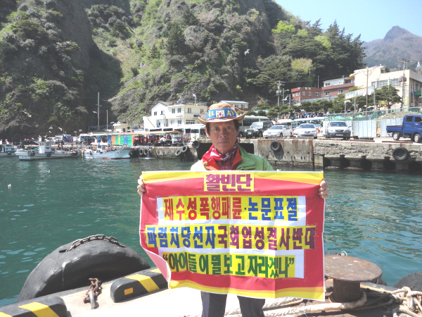 시민단체 활빈단(대표 홍정식)은 22일 새누리당 박근혜 비대위원장, 민주통합당 문성근 비대위원장등 여야 지도부에 4.11총선 당선자들을 대상으로, 여야합동 덕적도에서 덕(德)쌓기 연찬회와 연평도,백령도에서 국가안보수호결의식을 열라고 제안해 관심을 모으고 있다. (사진:보수시민단체 ‘활빈단’의 대표 홍정식 씨는 17일 오후, 울릉도 도동항과 울릉군청 앞에서 해당 당선자들의 ‘국회입성 반대’를 요구하는 시위를 벌였다.)