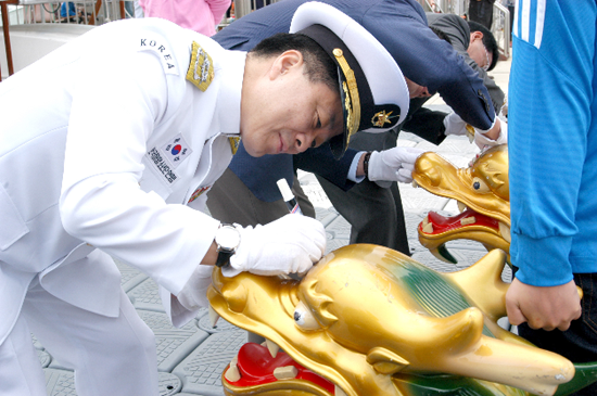용(龍)에게 생명을 불어 넣어주는 퍼포먼스인 '화룡점정'을 시작으로 초ㆍ중ㆍ고ㆍ대학일 반ㆍ해수산부 등 카누 5개 부문, 드래곤보트 9개 부문 총 14개 부문의 수상퍼레이드가 진행된다.(사진:전년도 행사에서 황규호 총재가 화룡점정을 하고 있는 모습)