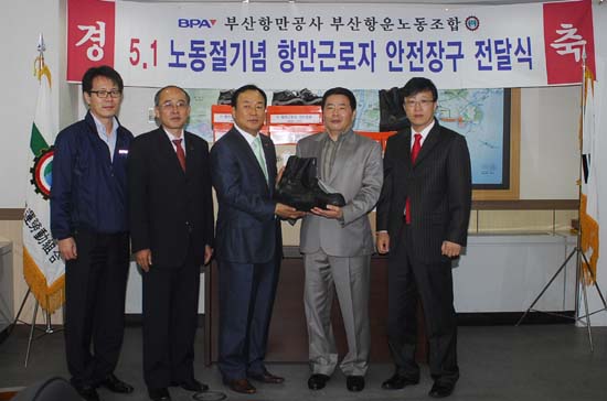 부산항만공사(BPA 사장 노기태)는 30일 부산항운노동조합(위원장 지용수)에  항만 안전사고 예방과 근로자들의 근무 환경 개선을 위해 방한화 및 안전화 9백켤레 등을 전달했다.