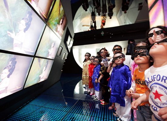 한국다문화예술원 원장이자 ‘첨밀밀’의 가수 헤라, 1박2일과 영화 ‘방가 방가’ 출연을 통해 대표적인 다문화 스타배우가 된 칸(한국명 방대한), 미수다의 라리사 등 대표적인 다문화 연예인 스타 3명이 SK텔레콤과 함께 다문화가정 어린이들에게 꿈과 희망을 심어주기 위해 특별 재능기부 행사를 펼친 것.(사진:어린이날을 앞둔 5월 4일, 파주시 금촌 1동 다문화 가정 어린이들이 SK텔레콤 본사의 '티움(T.um)'에서 IT 체험을 하고 있는 모습.)